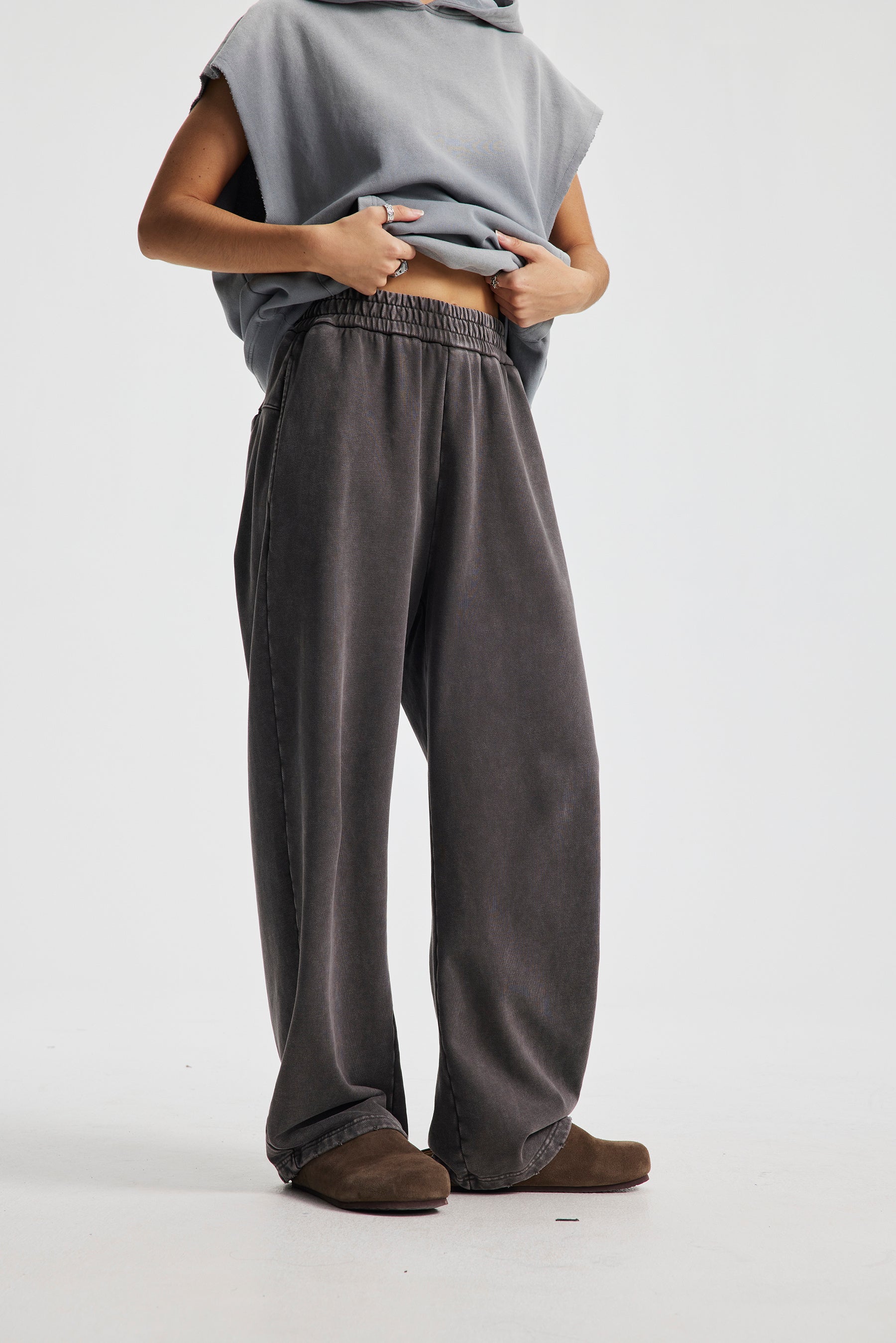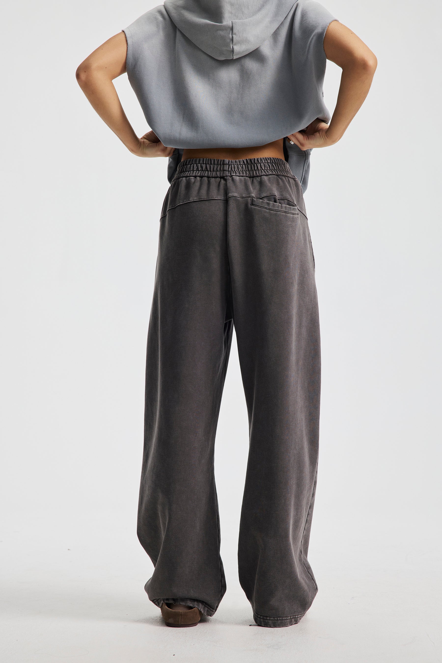 Crafted from 430G heavyweight 100% cotton, these washed sweatpants bring a vintage streetwear vibe with their relaxed, wide-leg silhouette. The garment-dye finish creates a worn-in look, perfect for effortless styling and comfort.