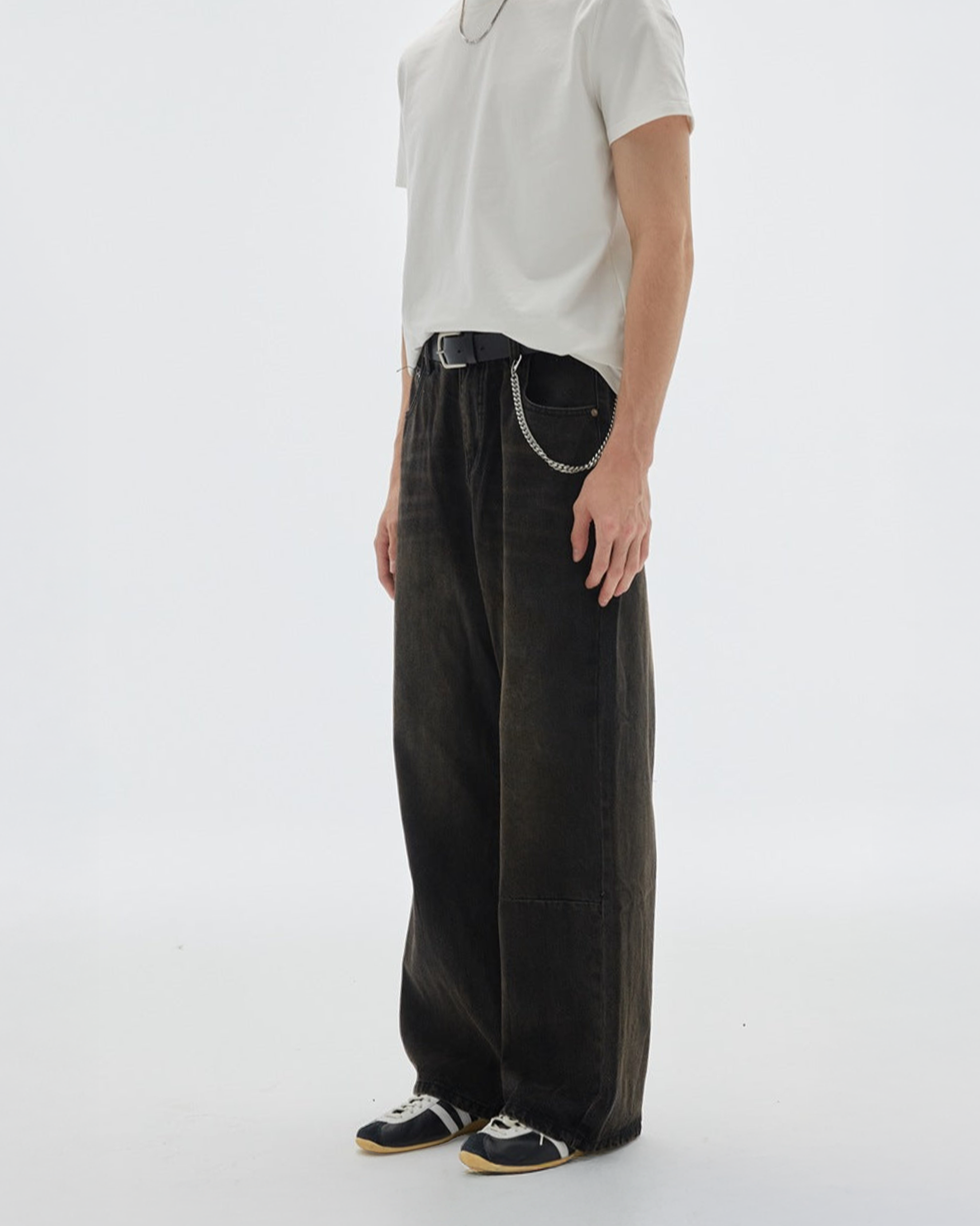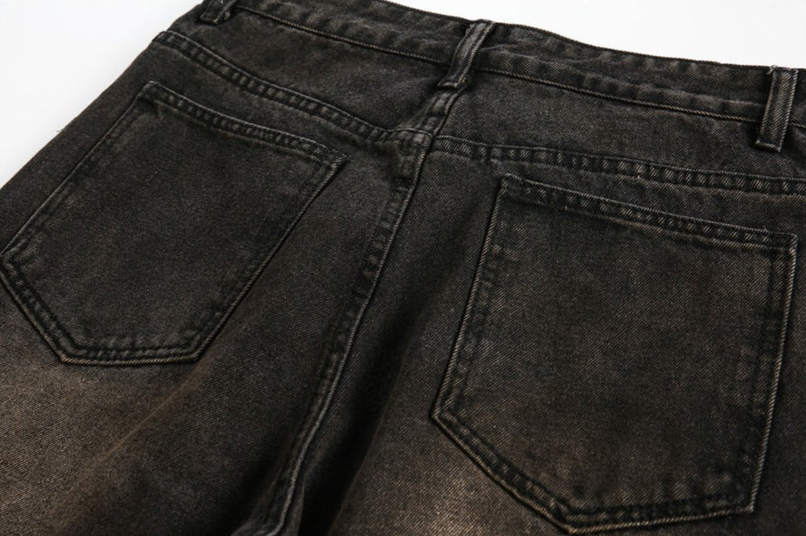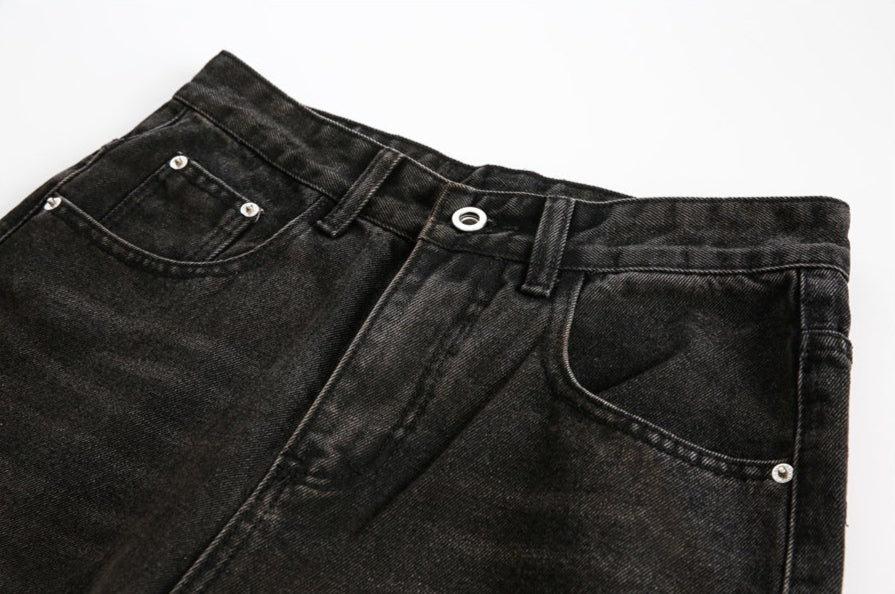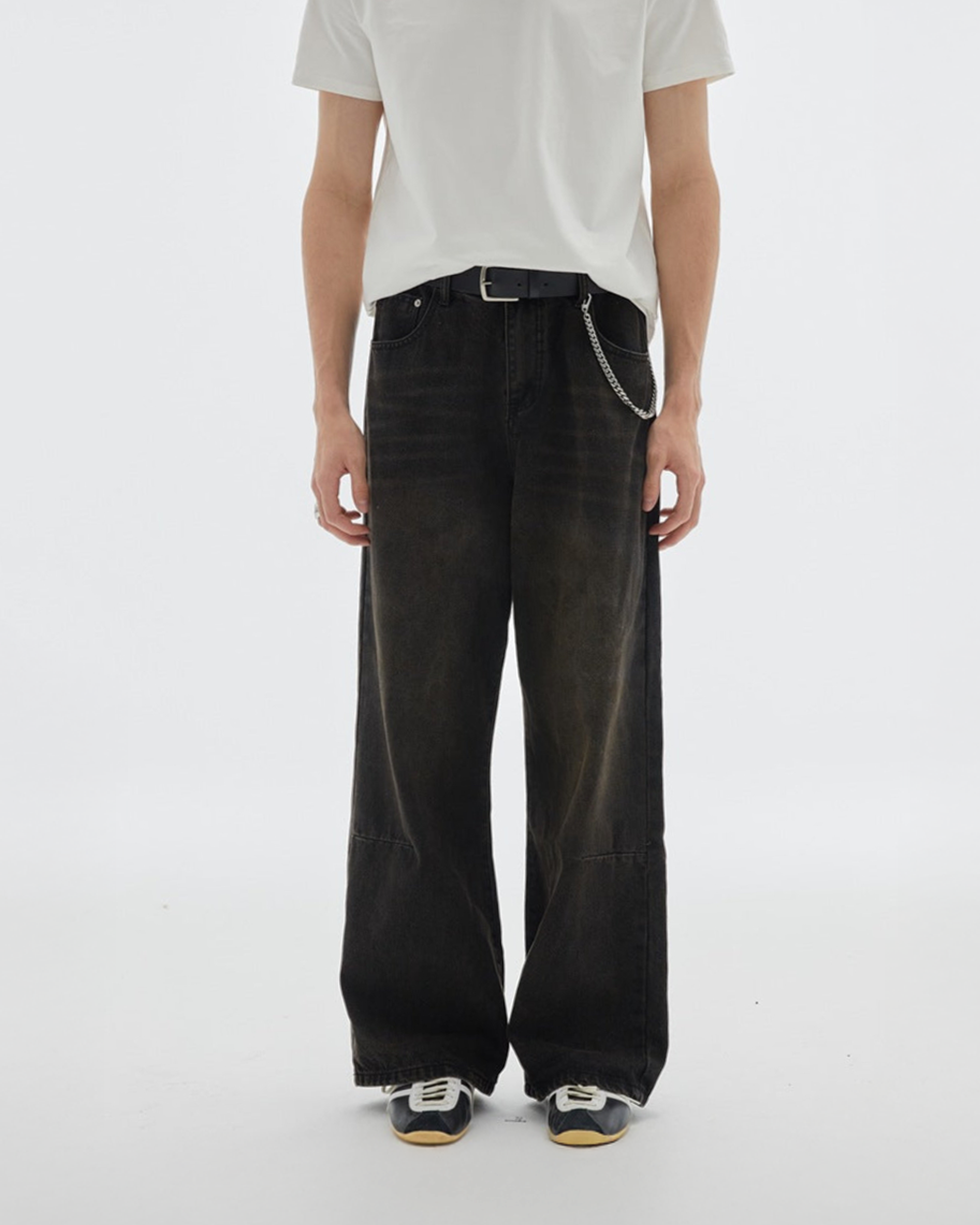 Merging raw edge appeal with everyday functionality, these sand-toned wide jeans offer a soft faded wash and bold cut-line panels that add dimension. Designed with relaxed legs and subtle vintage effect for elevated streetwear style.