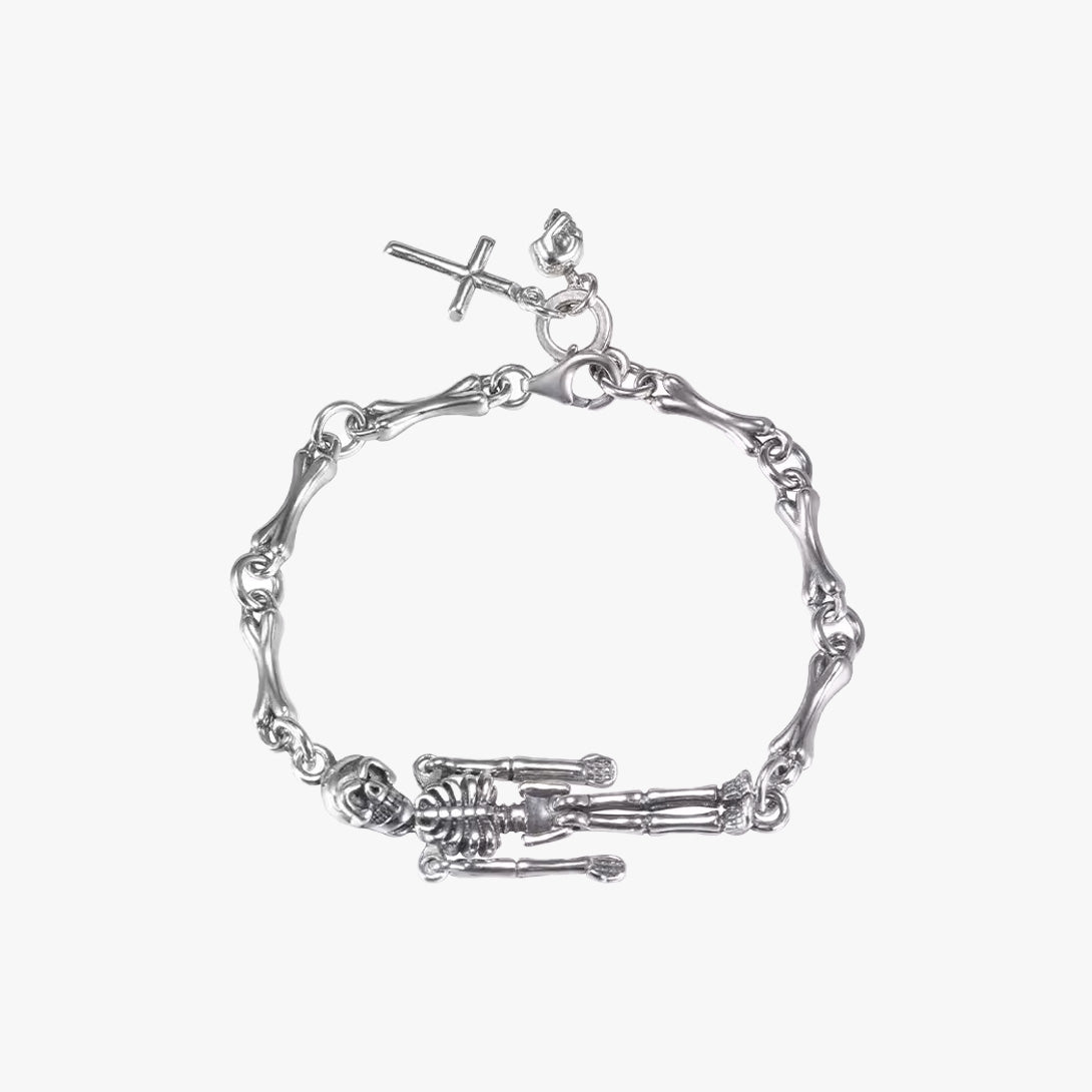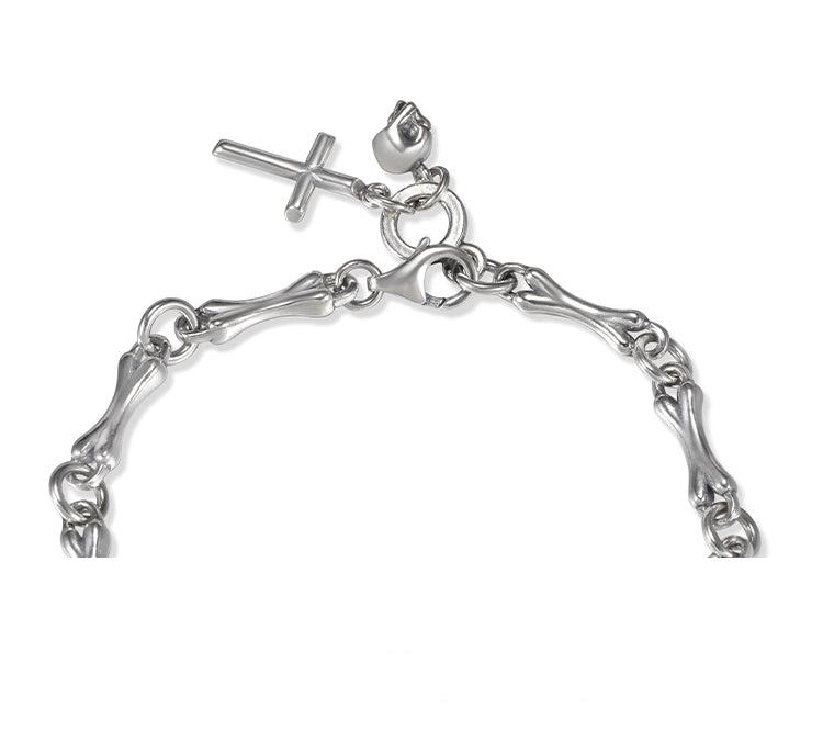 S925 スターリングシルバーで作られたこの目を引くスカル ボーン ブレスレットは、ヒップホップ カルチャーの真髄を体現しており、エッジの効いたストリート スタイルと汎用性の高いプレーン チェーン デザインがシームレスに融合され、力強い印象を与える大胆なクロスが際立っています。